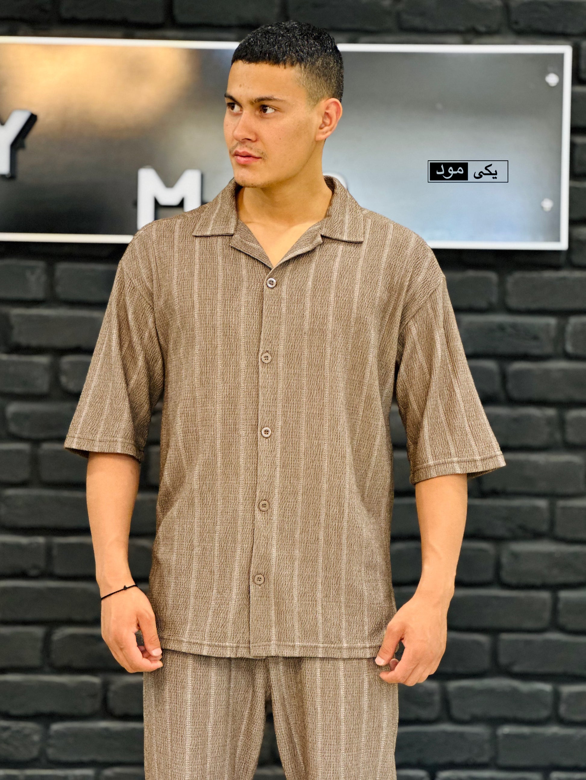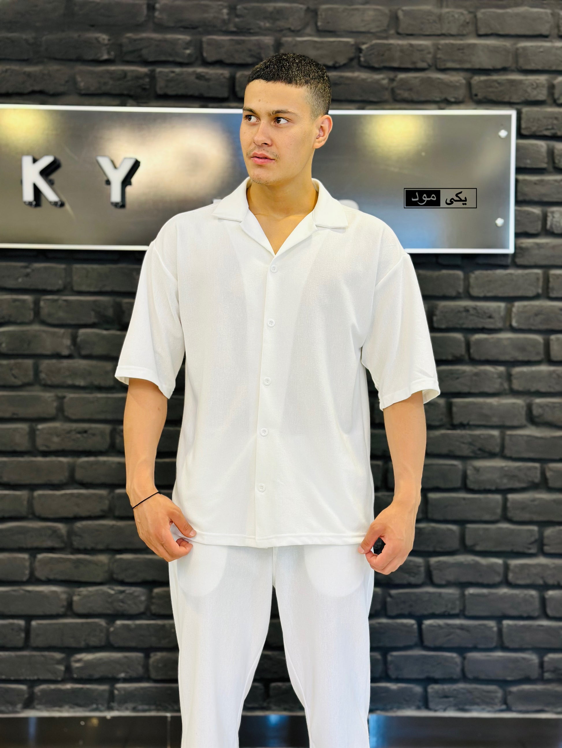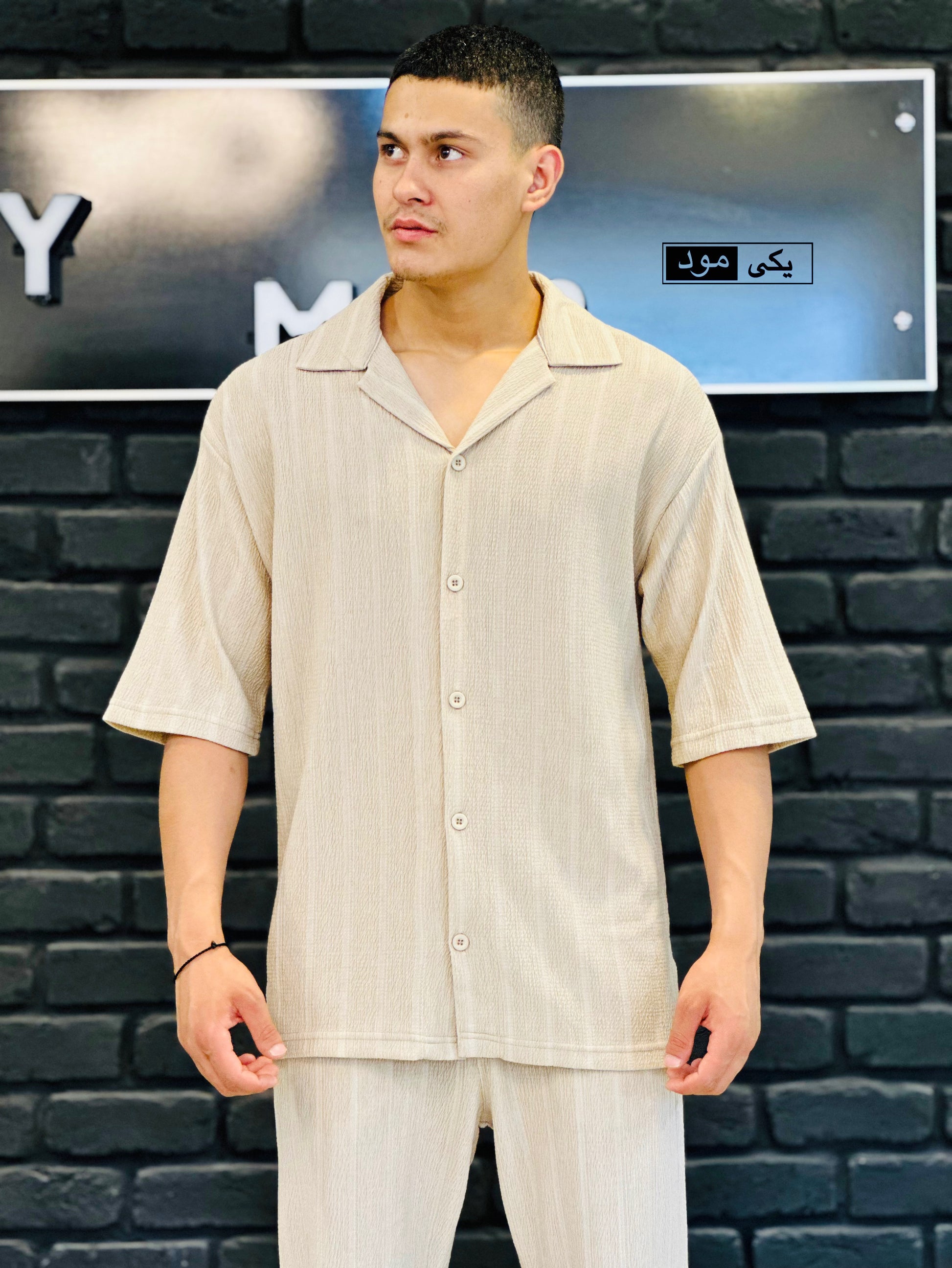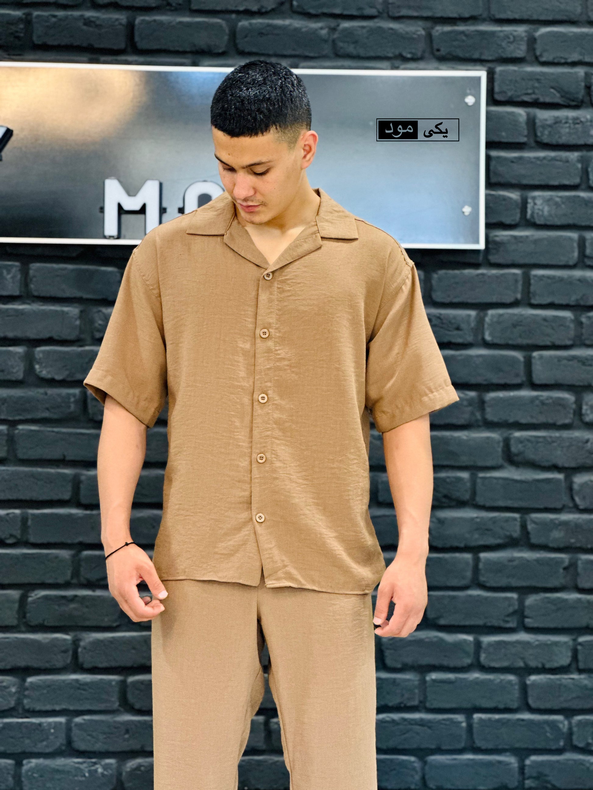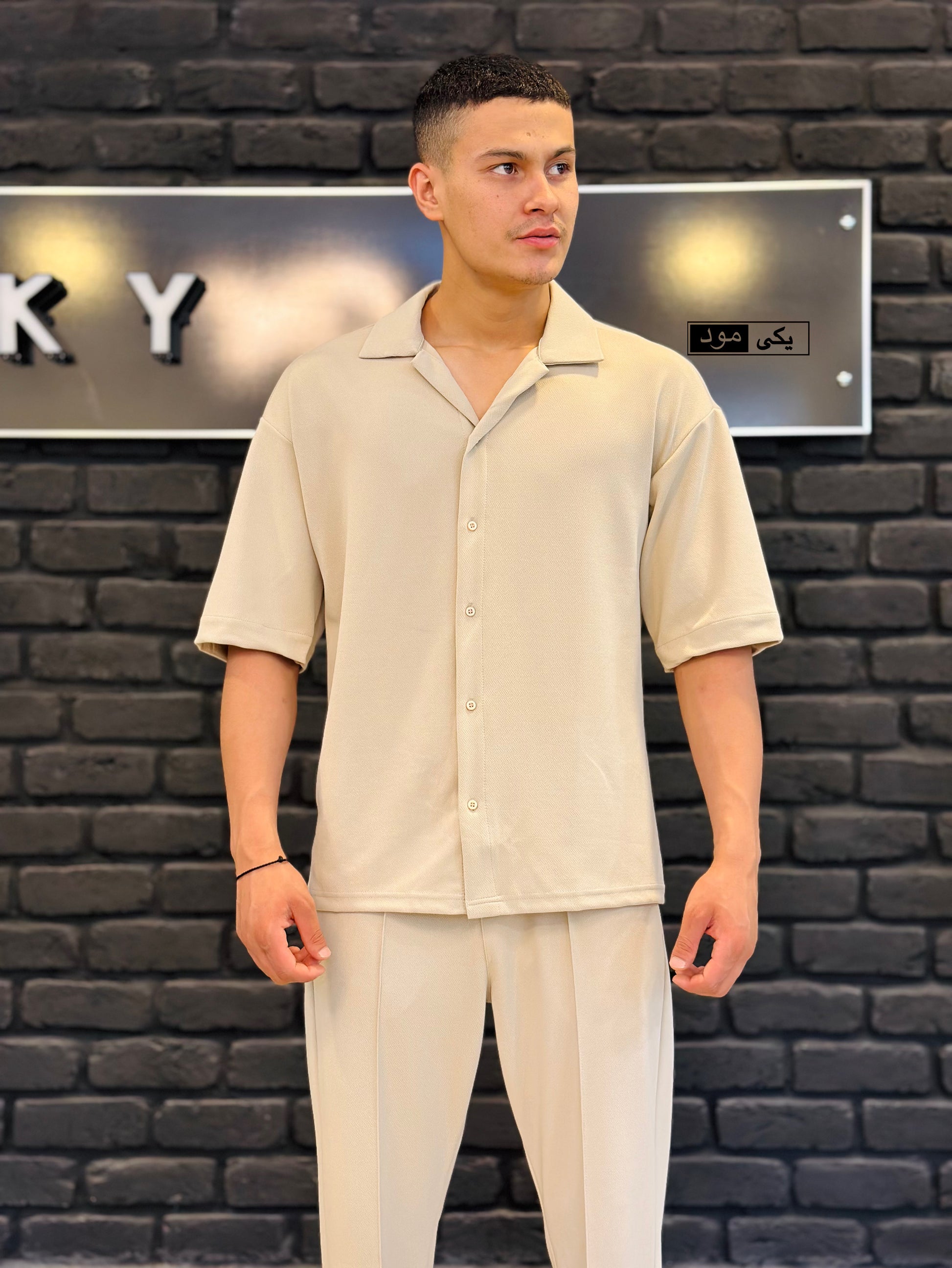 این ست شامل پیراهن آستین کوتاه با یقه برگردان و شلوار ساده است که از پارچه باکیفیت و لطیف دوخته شده.